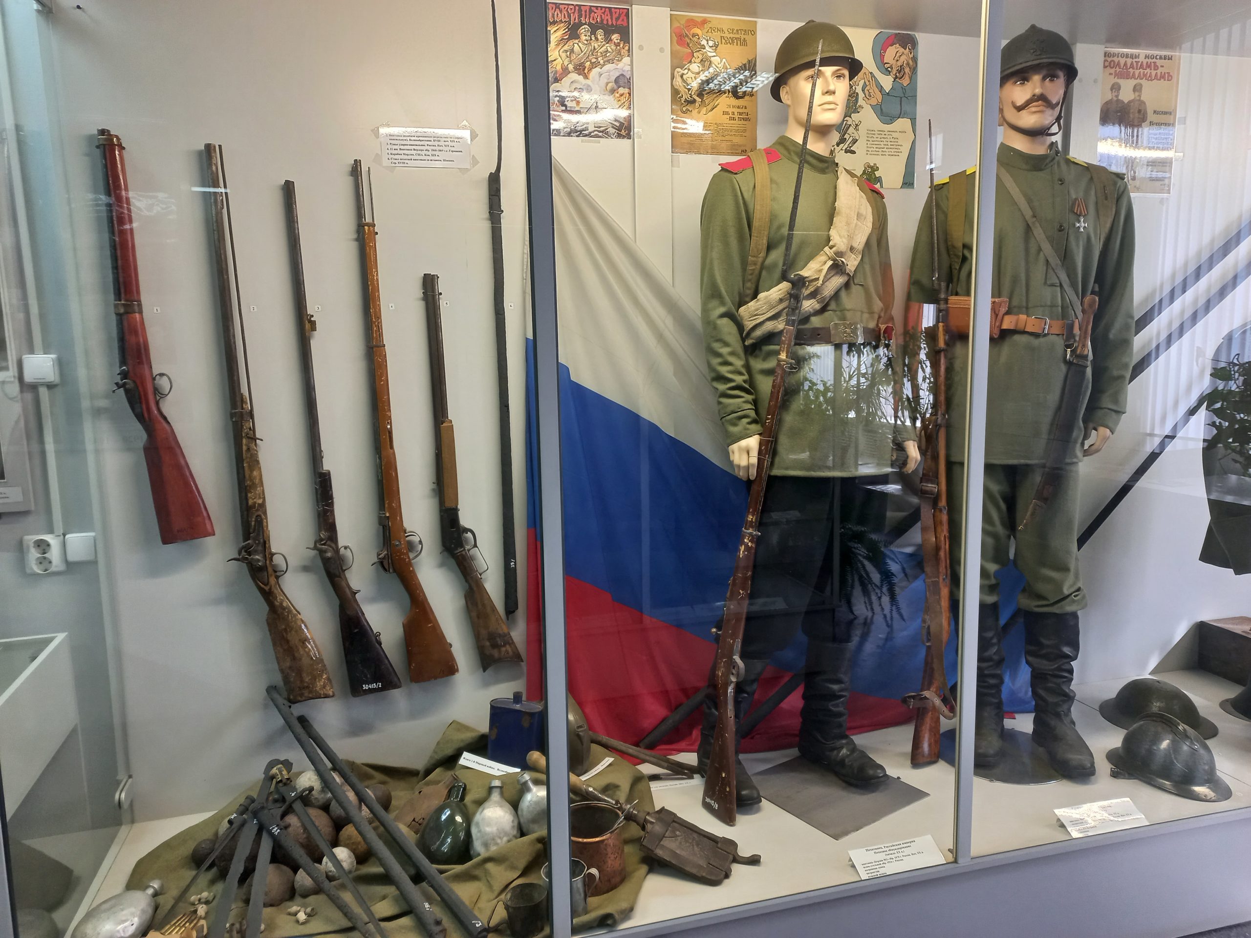 В экспозиции находятся редкие образцы вооружения СССР и России, США, Японии, Великобритании и Германии, а также фотографии, документы, личные вещи, имеющие отношение к конкретным людям и эпизодам войны.
