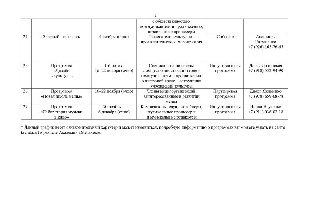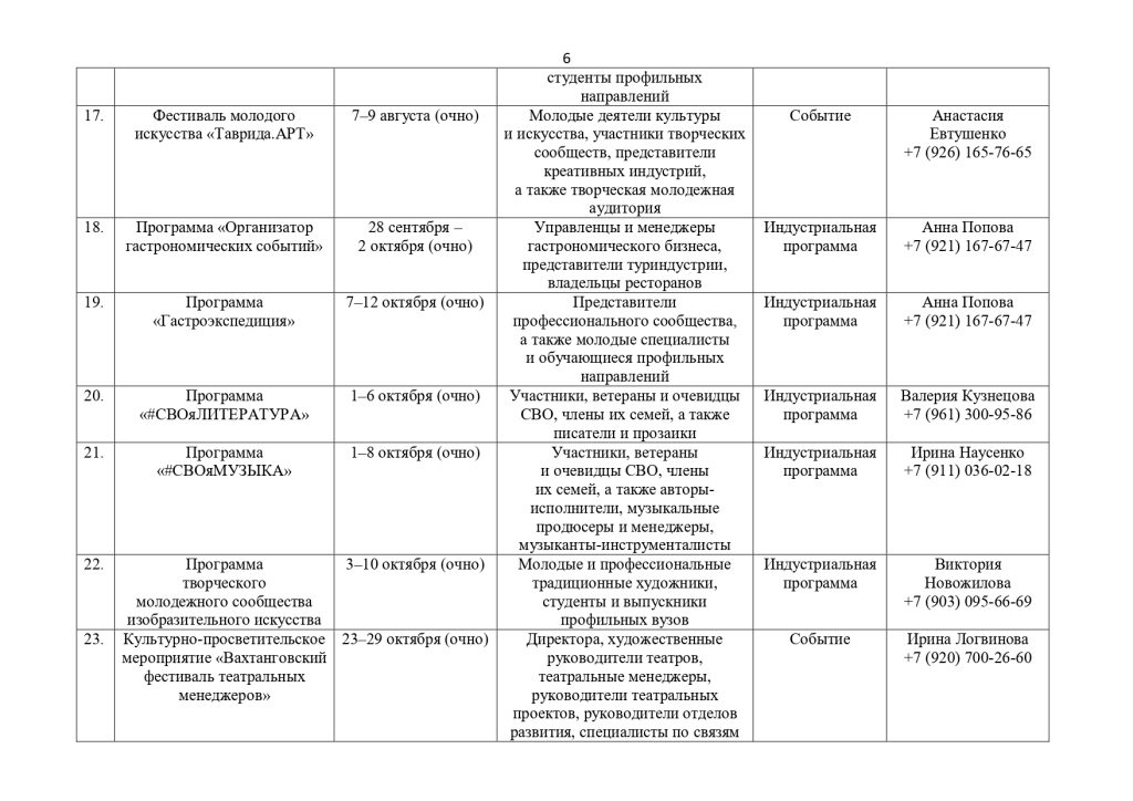 культуры, студентов профильных образовательных а также действующих специалистов, педагогов, сотрудников учреждений культуры и представителей творческих профессий. С подробной информацией о мероприятиях можно ознакомиться на официальном сайте организатора: https://tavrida.art.