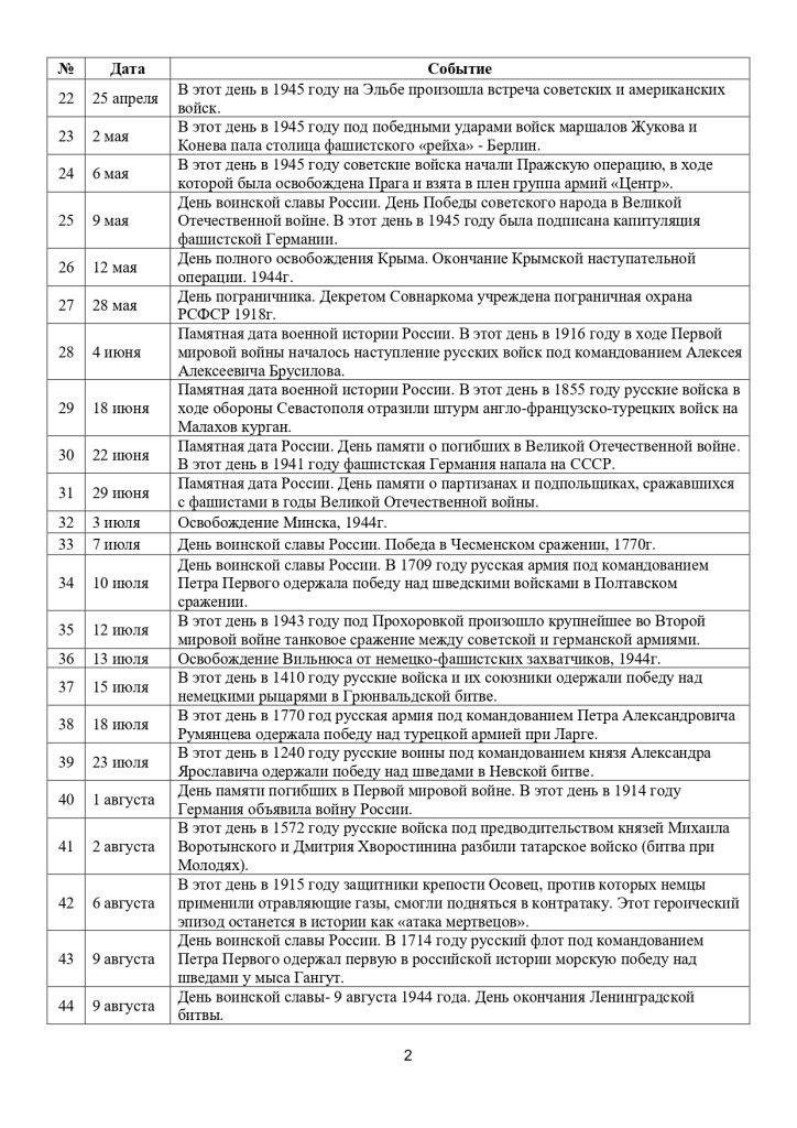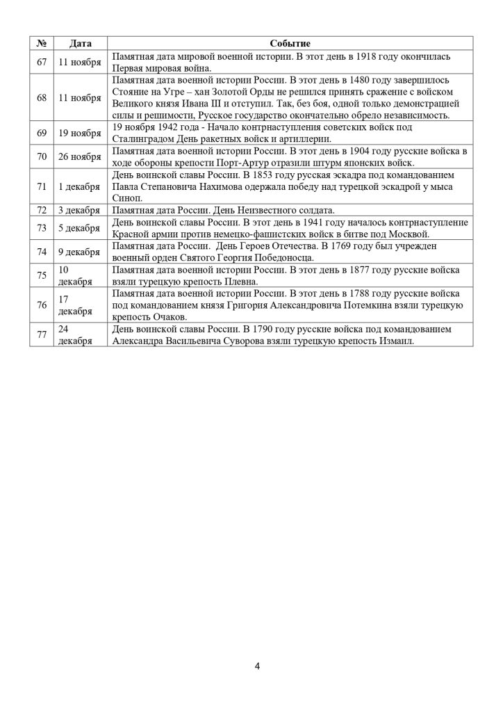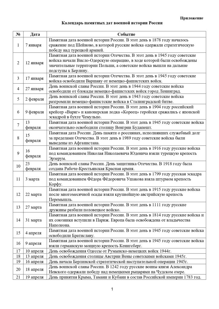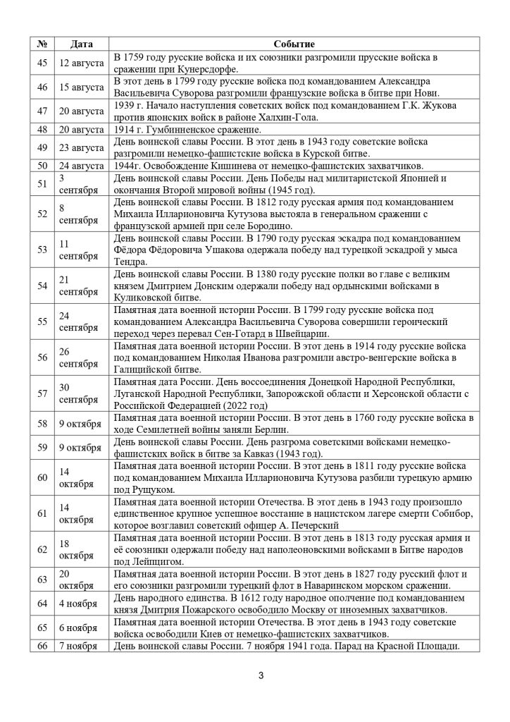 Список памятных дат военной истории Отечества!